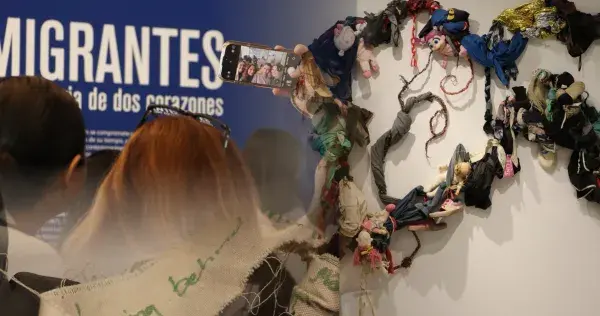 Las obras de la exposición acompañan al migrante a lo largo de su trayecto, abordando experiencias como el cruce del desierto, la pérdida del hogar y el desplazamiento forzado.