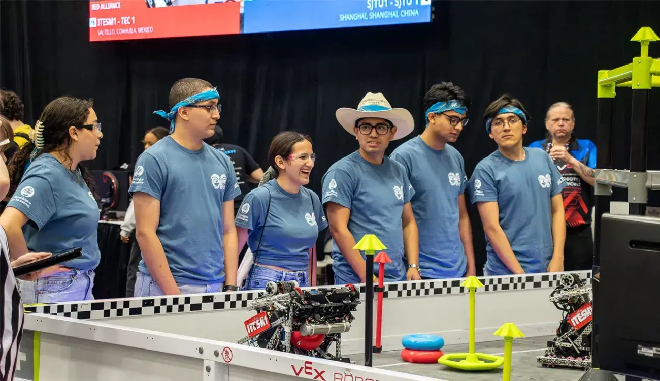 Estudiantes de la Escuela de Ingeniería del Tecnológico de Monterrey campus Saltillo, participaron en el VEX Robotics World Championship 2025, llevado a cabo del 9 al 11 de mayo en Dallas, Texas, como parte del equipo ITESM1.